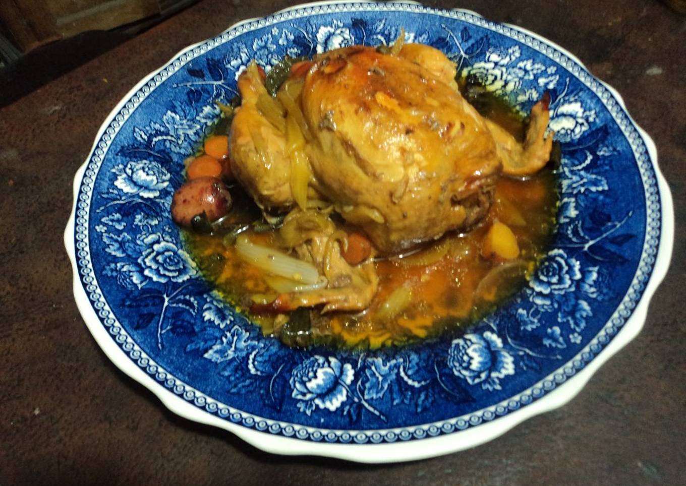 Pollo de sabor fuerte, muy condimentado de reminiscencia barroca u oriental, receta de convento