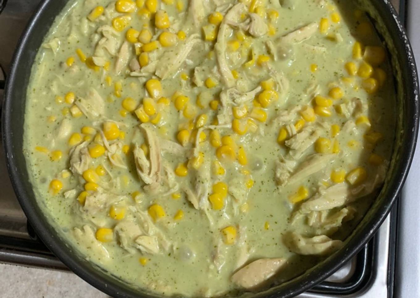 - Se deja hervir 5 minutos con el pollo y se agrega la lata de elote, se deja un minuto más en el fuego y listo ! Puedes acompañar con arroz blanco.